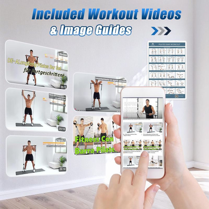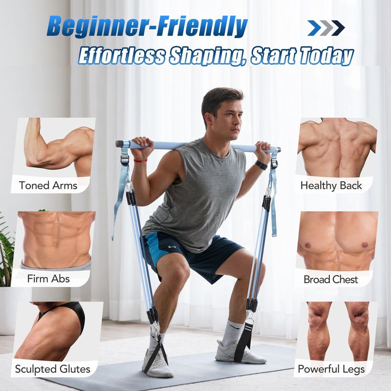 BELLEZA Y SALUDFITNESSACCESORIOS DEPORTIVOSKit de barra de pilates mejorado con bandas de resistencia, látex natural para mujeres y hombres,