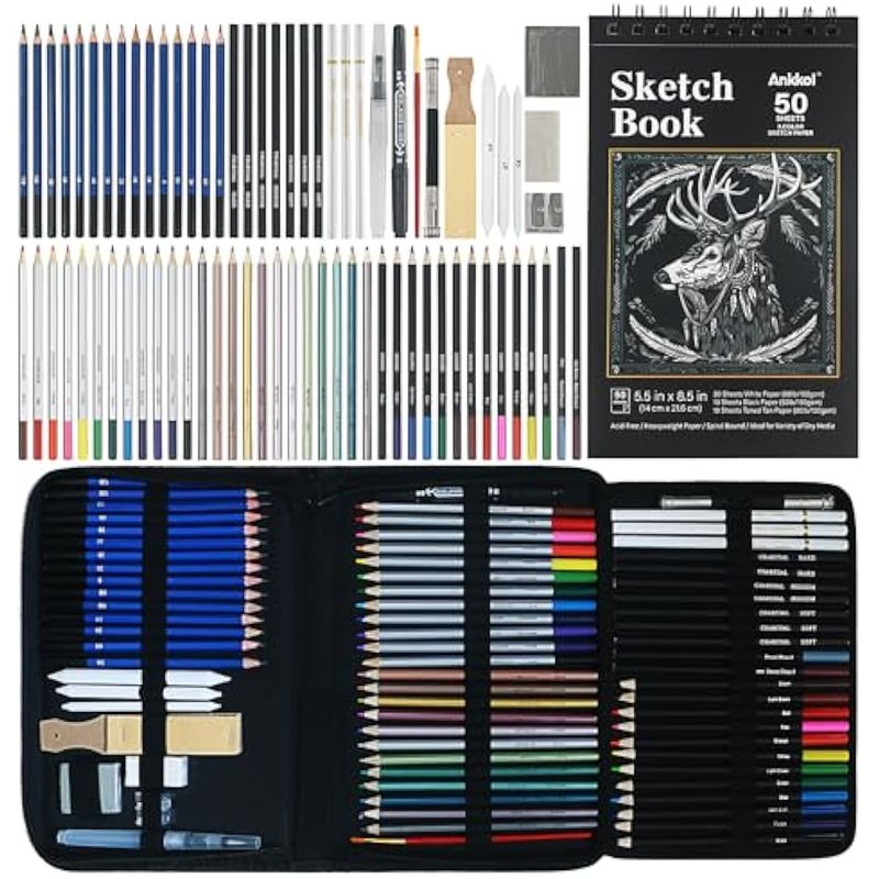 Kit de dibujo para bocetos, paquete de 76 lápices de dibujo, suministros de dibujo que incluyen