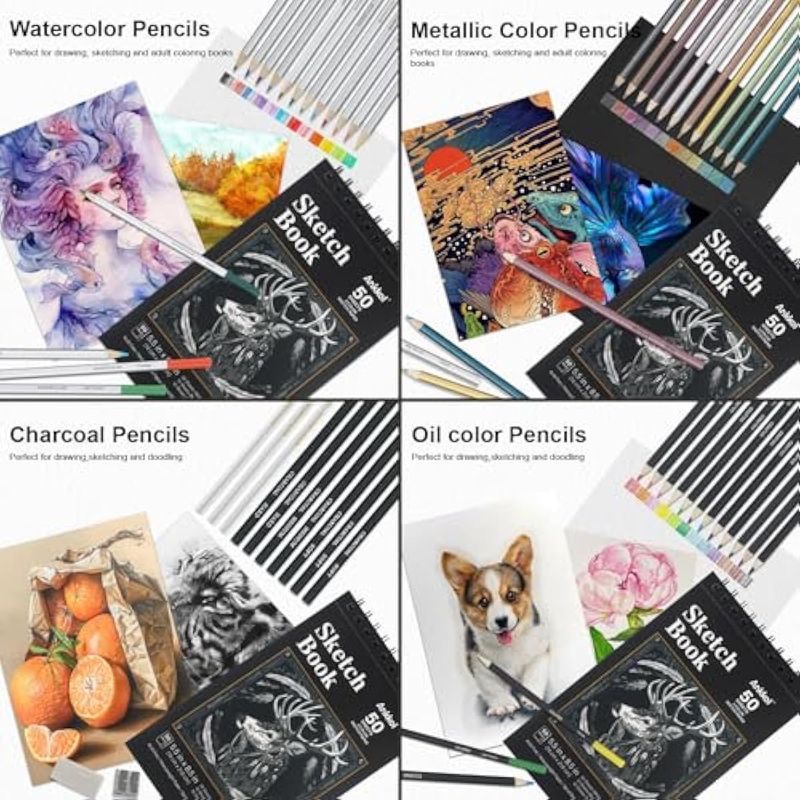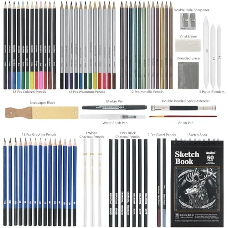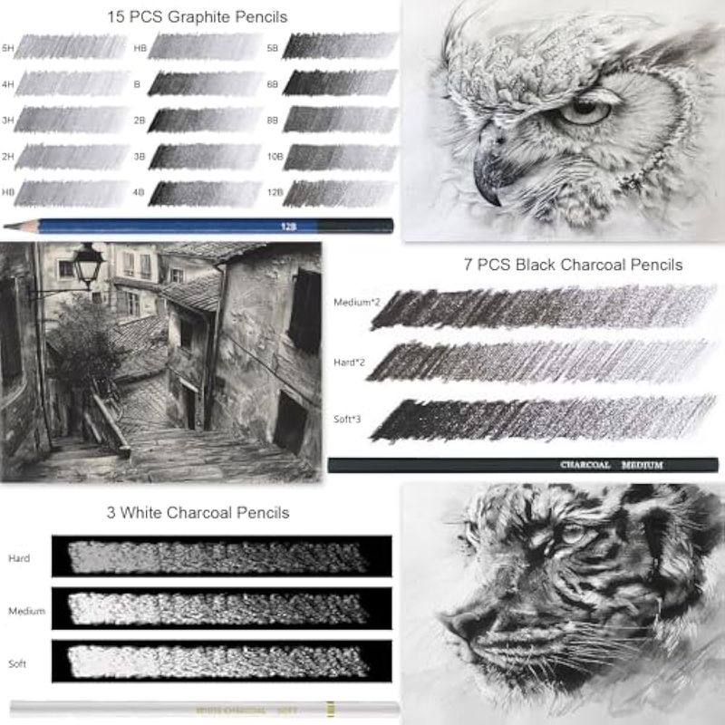 ARTE, LIBRERÍA Y OFICINAMATERIALES DE ARTEKit de dibujo para bocetos, paquete de 76 lápices de dibujo, suministros de dibujo que incluyen