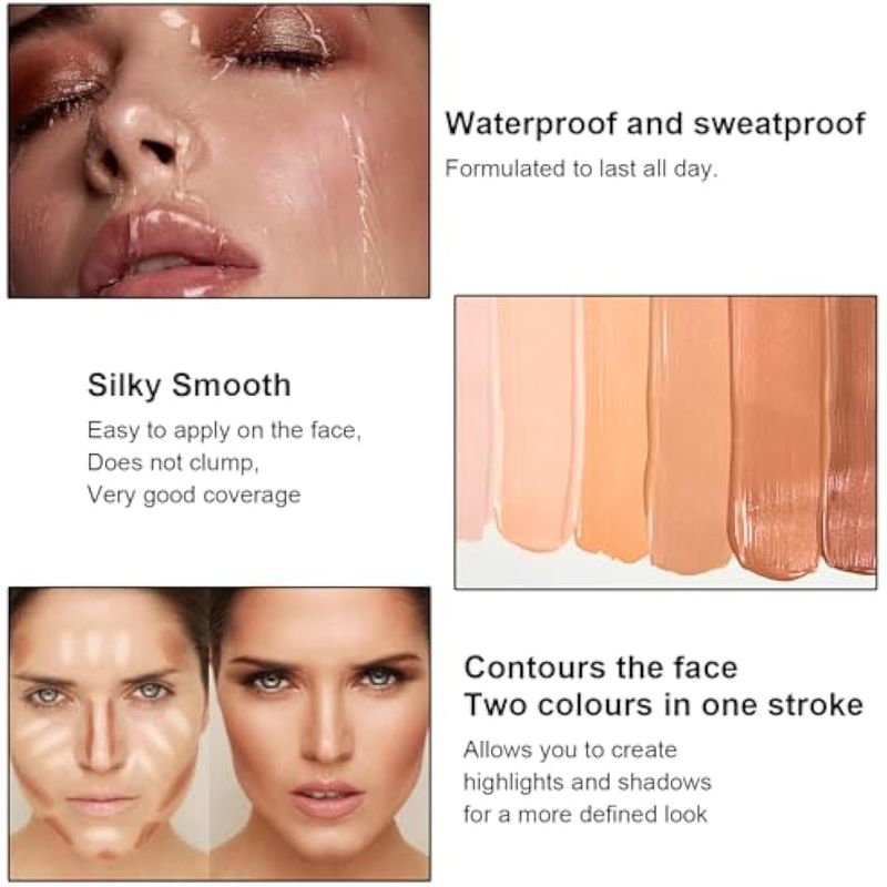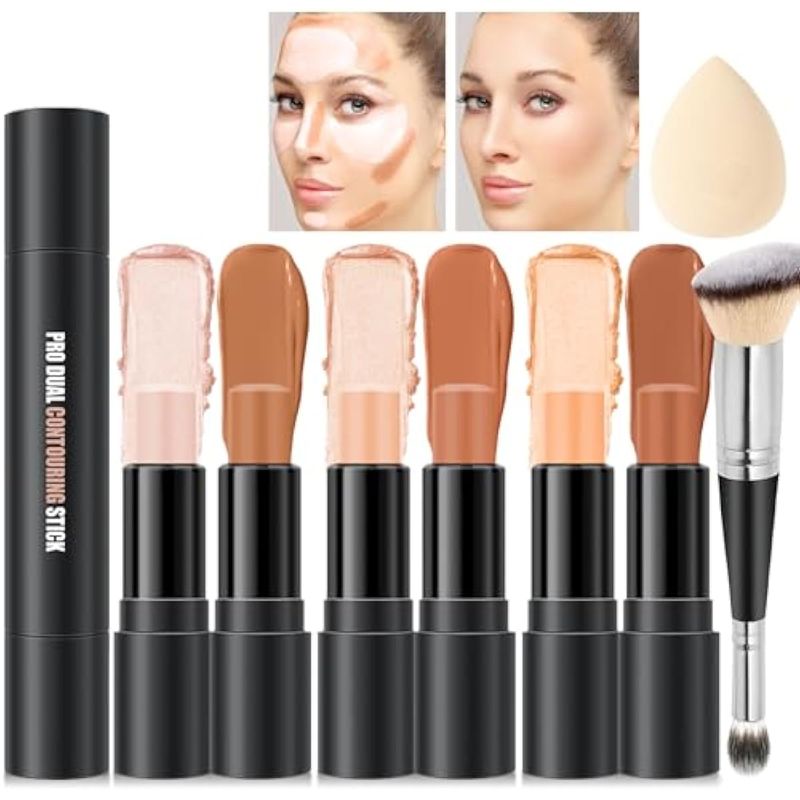 Kit de maquillaje de barras de contorno de crema de 6 colores, primer iluminador facial para
