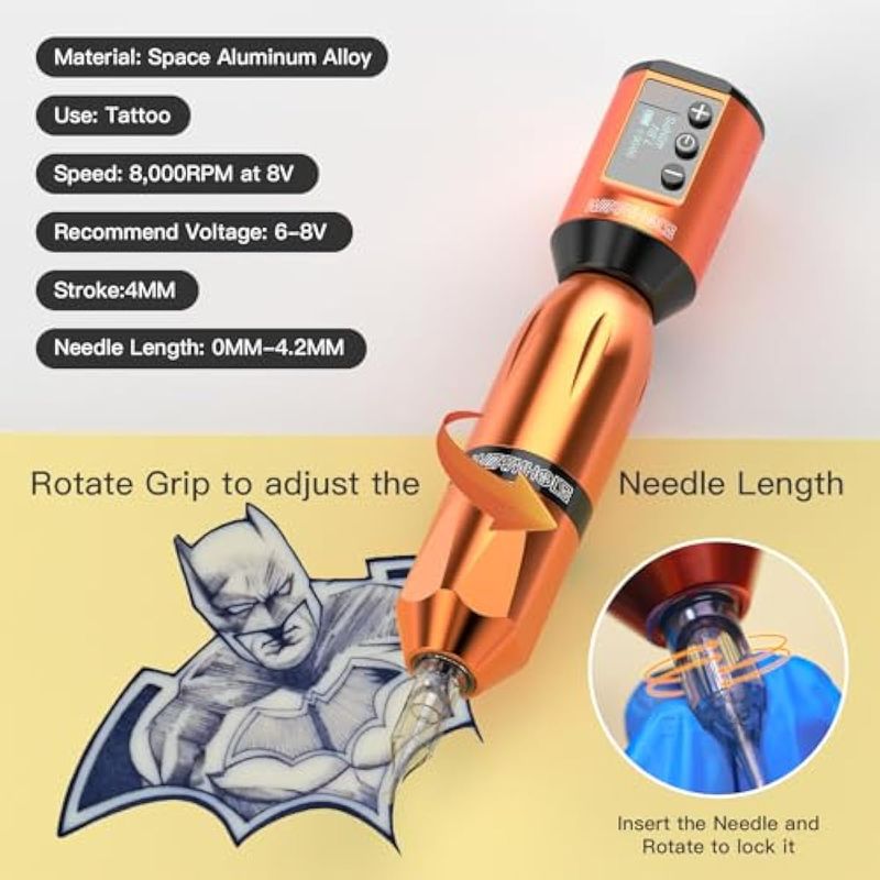 BELLEZA Y SALUDBELLEZA Y CUIDADO CORPORALKit de pistola de tatuaje, kit de máquina de tatuaje inalámbrica con capacidad de 1,500 mAh, fuente