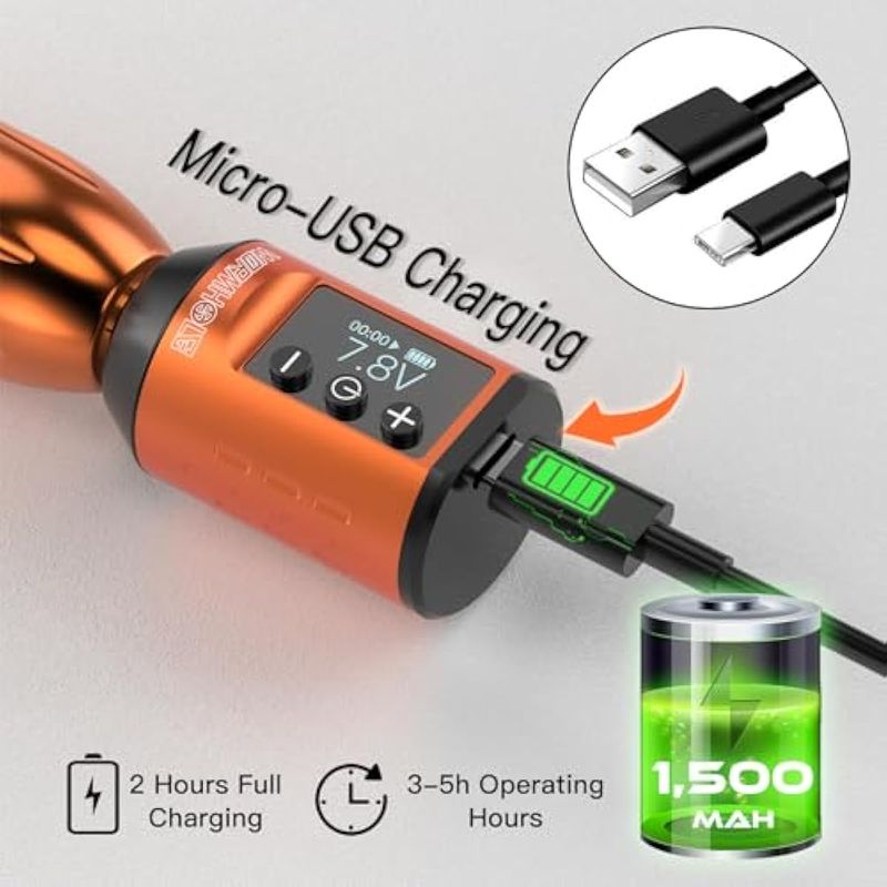 Kit de pistola de tatuaje, kit de máquina de tatuaje inalámbrica con capacidad de 1,500 mAh, fuente