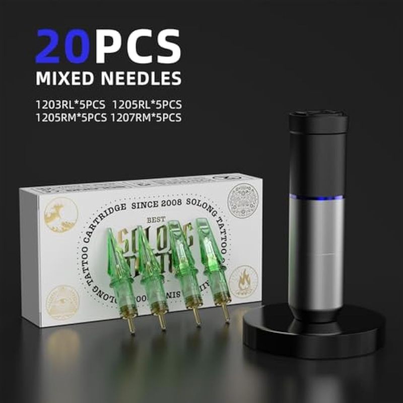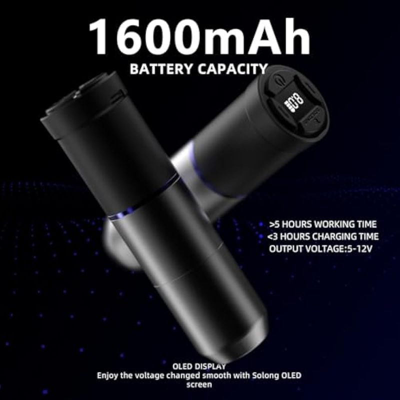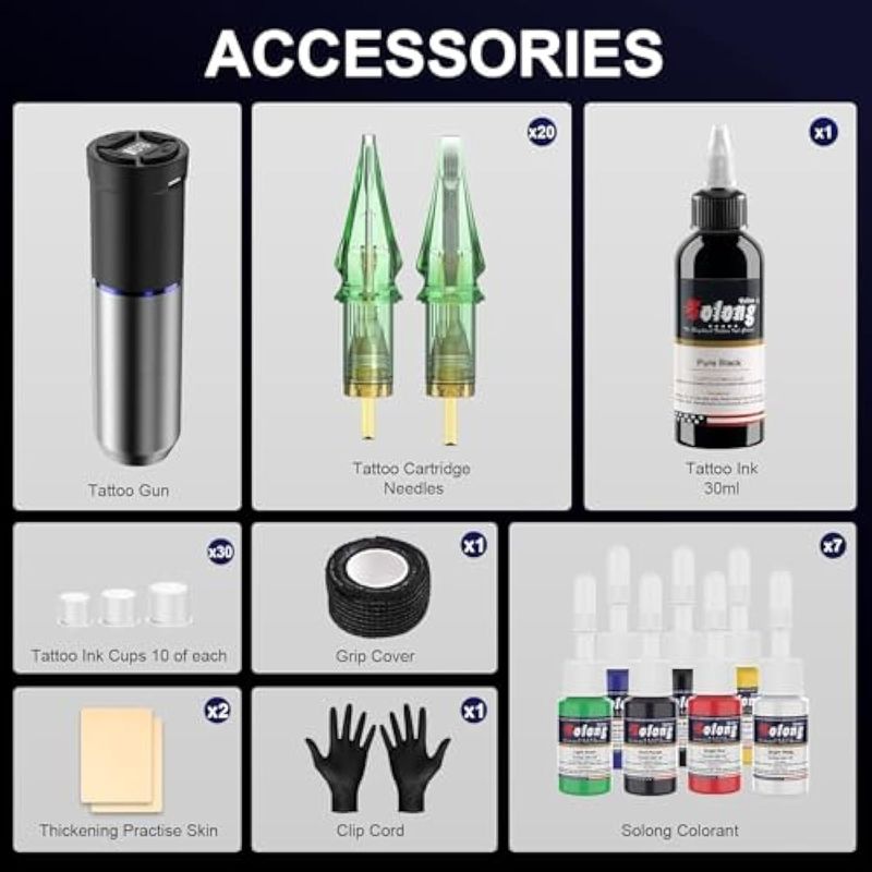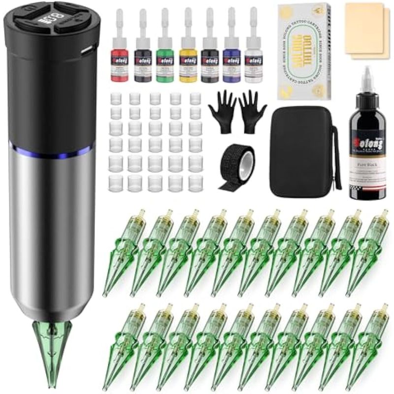 Kit de pistola de tatuaje, pistola de tatuaje inalámbrica Solong de 1600 mAh, 2 modos de