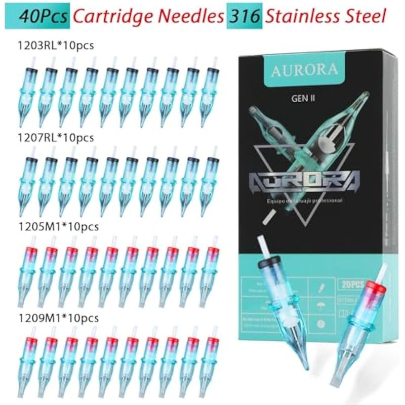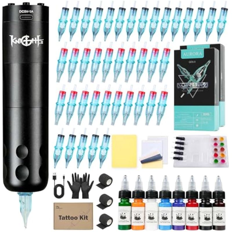Kit de pistola de tatuaje profesional, pistola de tatuaje inalámbrica de 10000 RPM, 40 cartuchos de