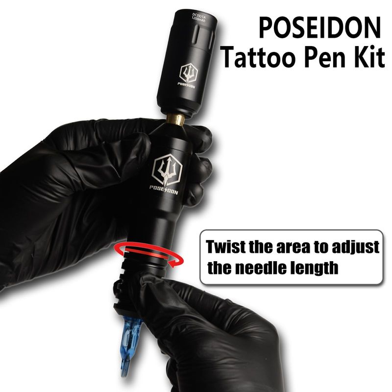 Kit de Pluma de Tatuaje - Kit de Máquina de Tatuaje Inalámbrica POSEIDON, Kit de Pistola de Tatuaje