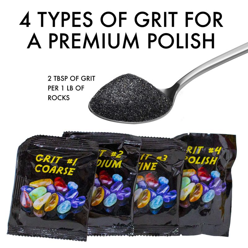 FOUR GRADES OF GRIT - Coarse, medium, fine, polish. Transform your stones from rough rocks to dazzling gemstones!