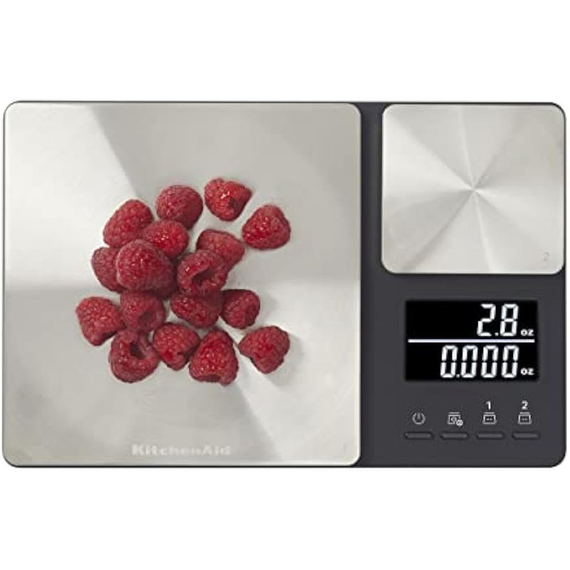 KitchenAid KQ909 Báscula digital de cocina y alimentos de doble plataforma, capacidad de 11 libras y