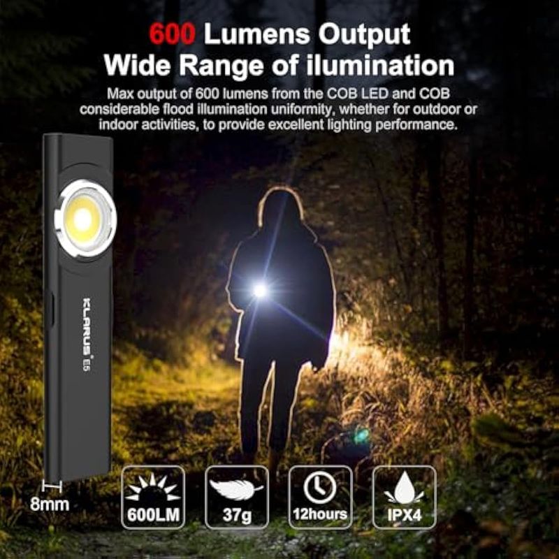 klarus Linterna de bolsillo E5, linterna EDC recargable, súper delgada de 4.2 x 1 x 0.3 pulgadas,