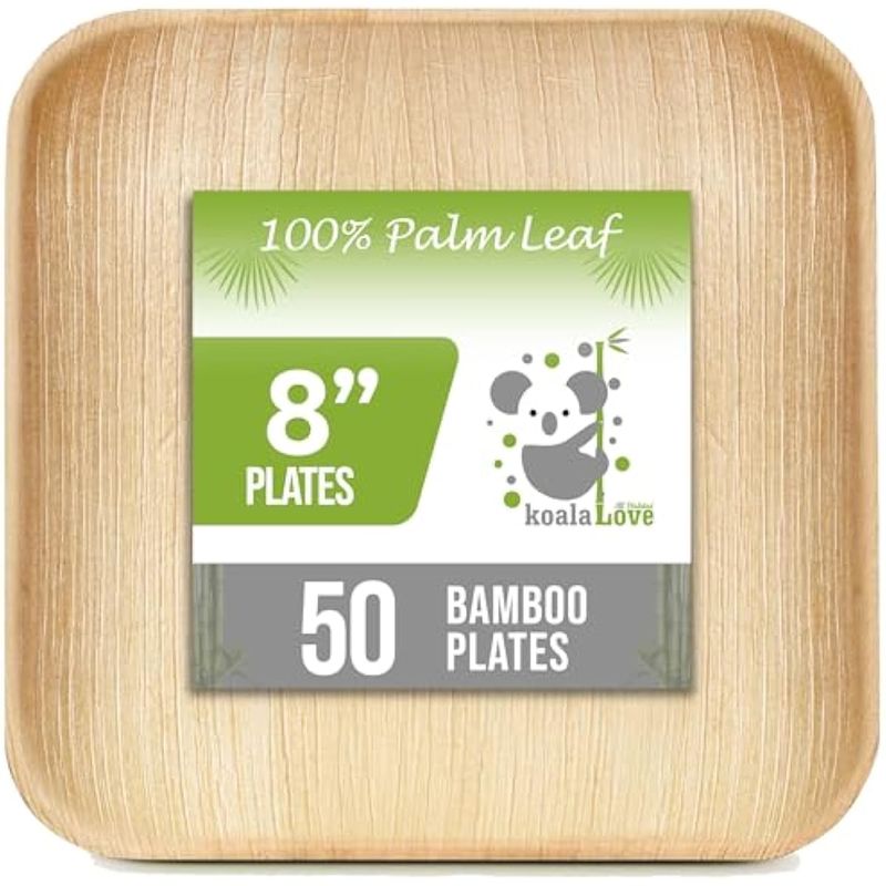 KoalaLove - Platos de papel de bambú desechables de 8 pulgadas, 50 platos cuadrados para aperitivos