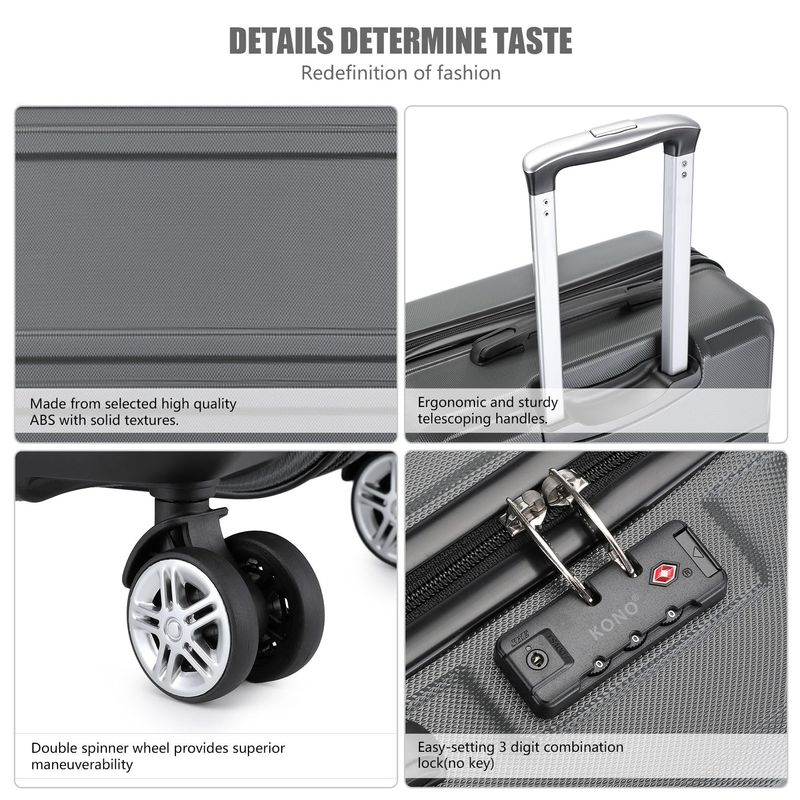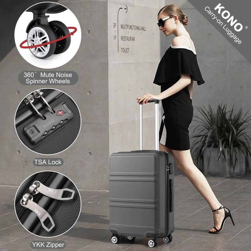 Kono Maleta de equipaje con ruedas giratorias Hardside Ligero ABS Carry On Maleta Juego de 4 piezas,