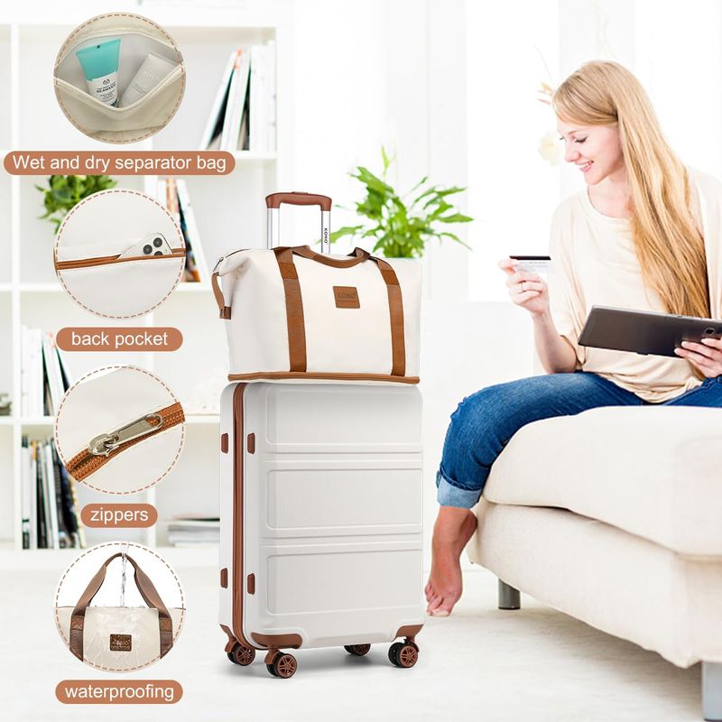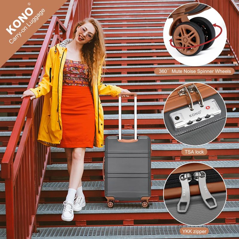 Kono Maleta de equipaje con ruedas giratorias Hardside Ligero ABS Carry On Maleta Juego de 4 piezas,