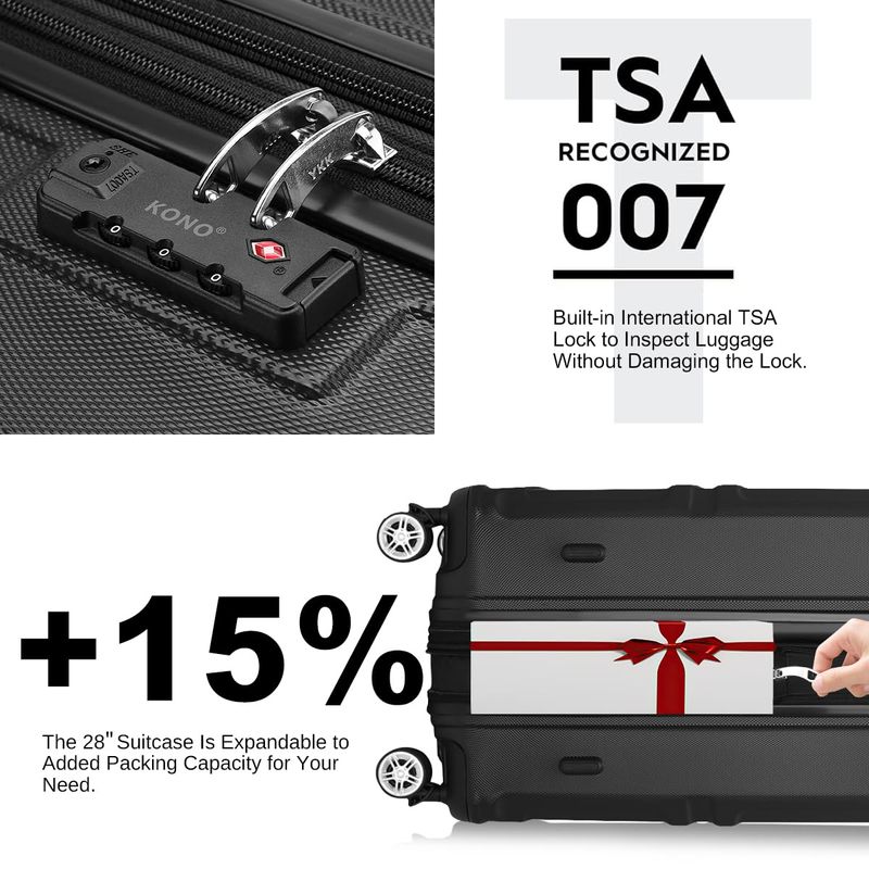 Kono Maleta de equipaje con ruedas giratorias Hardside Ligero ABS Carry On Maleta Juego de 4 piezas,