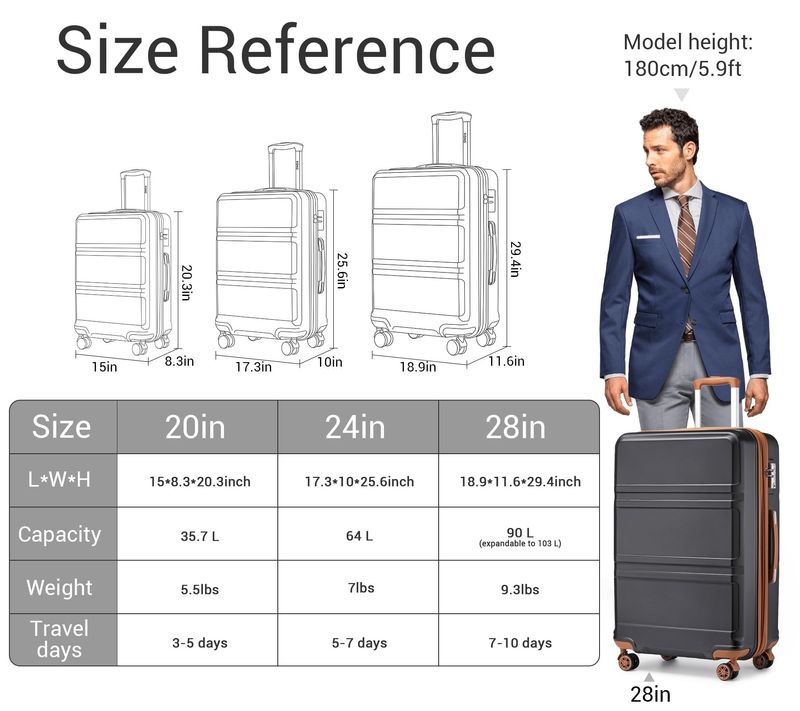 EQUIPAJEVALIJASKono Maleta de equipaje con ruedas giratorias Hardside Ligero ABS Carry On Maleta Juego de 4 piezas,