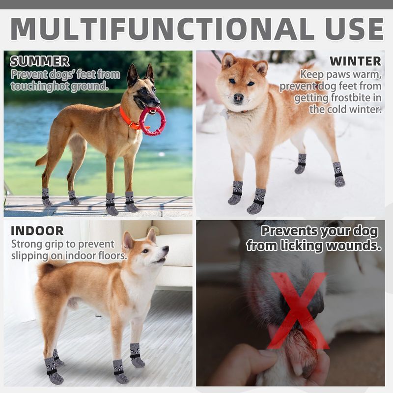 KOOLTAIL Calcetines antideslizantes para perro, 2 pares de zapatos de perro de doble cara, agarre de
