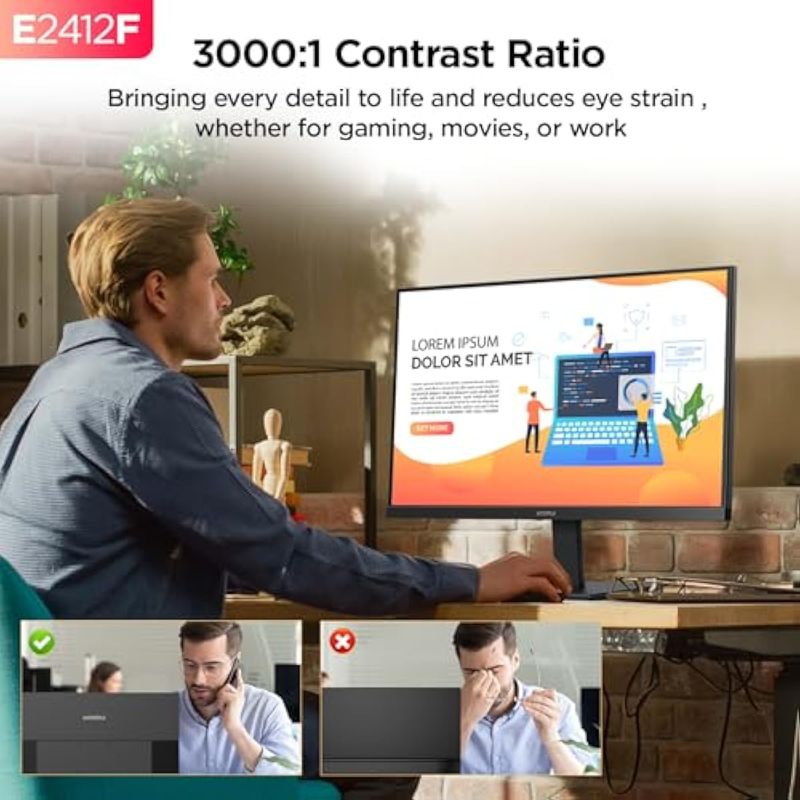 INFORMÁTICAMONITORESKOORUI Monitor de computadora de 24 pulgadas FHD 1920 x 1080p 100HZ, altavoces integrados, biseles