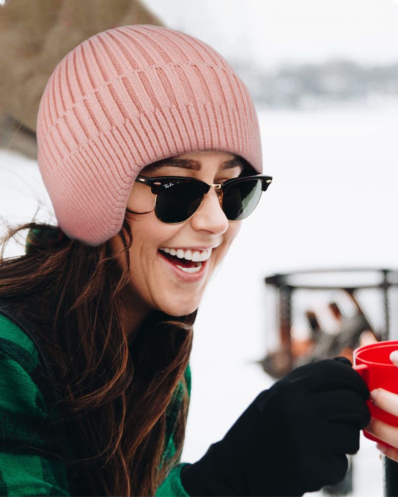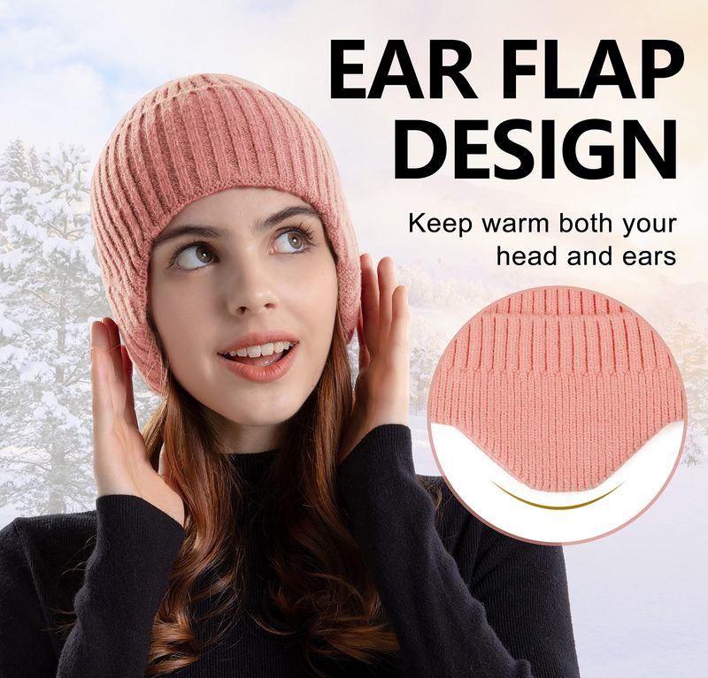 Koreshion Gorro de invierno para mujer con solapa para las orejas, gorro de punto de lana cálido