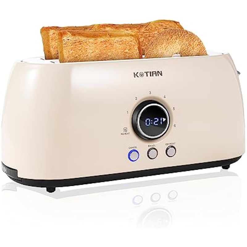 PEQUEÑOS ELECTRODOMÉSTICOSPEQUEÑOS COCINATOSTADORASKOTIAN Tostadora de 4 rebanadas, tostadoras retro de ranura larga con temporizador de cuenta