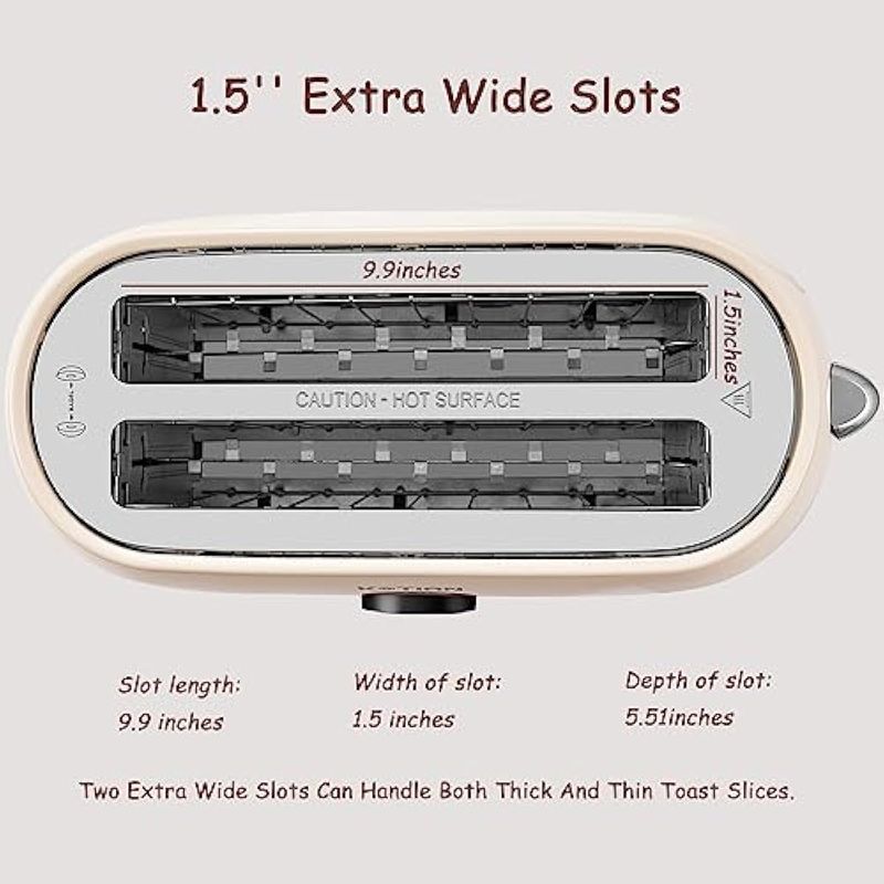 KOTIAN Tostadora de 4 rebanadas, tostadoras retro de ranura larga con temporizador de cuenta