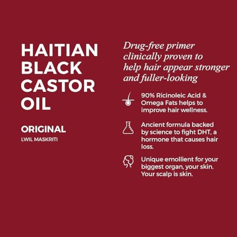 Kreyol Essence - Aceite de ricino negro haitiano para piel y cabello, botella de vidrio, crecimiento