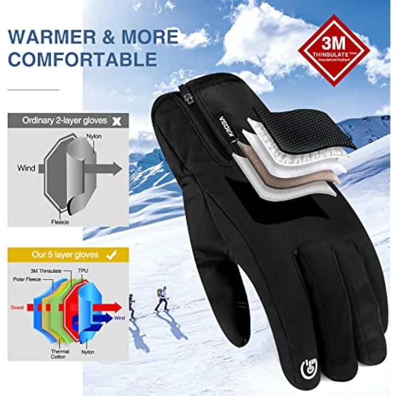 HOGARINDUMENTARIA Y ACCESORIOSkrosa -10? Winter Gloves Men Women, 10 Touchscreen Fingers Snow Ski Gloves, Waterproof Cold Weather