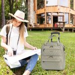 Viaje sin complicaciones: parte superior con asa de transporte resistente para facilitar el levantamiento. La espalda con una funda inteligente permite que la bolsa se coloque sobre el mango de la mayoría de las piezas de equipaje verticales.