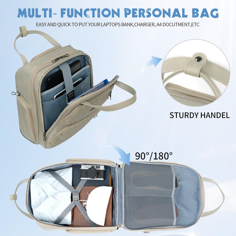 BOLSA PERSONAL MULTIFUNCIÓN: Amplio compartimento principal funciona bien para ropazapatos. Cuenta con un compartimento acolchado para laptop que se adapta a portátiles de hasta 15.6 pulgadas. Organizador frontal de fácil acceso para objetos pequeños. Ambos lados con bolsillos con cremallera para la batería y la botella de agua.