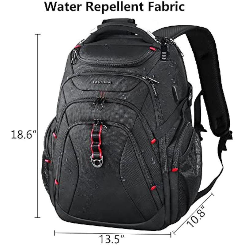 Material duradero: esta elegante mochila para laptop está hecha de tela balística repelente al agua de alta calidad; Dimensiones: 18.6 x 13.5 x 10.8 pulgadas, se adapta a portátiles de hasta 17.3 pulgadas; peso: 3.08 libras