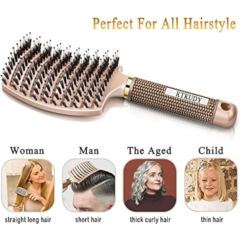 KTKUDY Cepillo desenredante para eliminar nudos sin dolor, cepillo de cerdas de jabalí que hace que