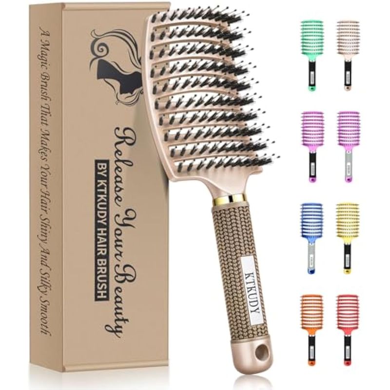 BELLEZA Y SALUDBELLEZA Y CUIDADO CORPORALCUIDADO CAPILARKTKUDY Cepillo desenredante para eliminar nudos sin dolor, cepillo de cerdas de jabalí que hace que