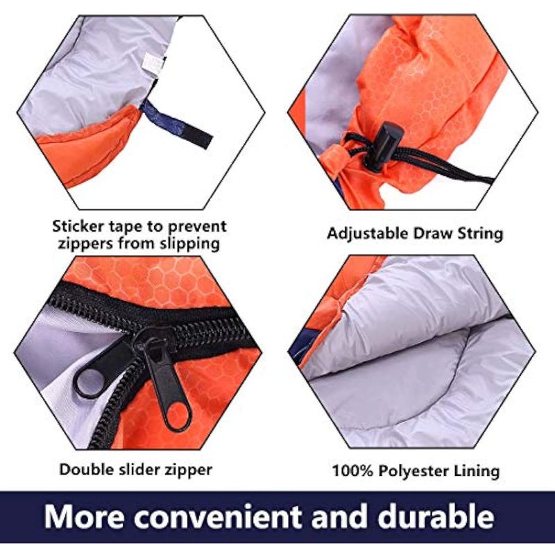 Ultraligero y resistente al agua: este saco de dormir ultraligero pesa solo 2.9 libras, incluyendo la bolsa de transporte. La función impermeable puede mantenerse mejor seco y cómodo. Los sacos de dormir tienen forma y costura para que sea extremadamente duradero en cualquier condición climática. Cremalleras de metal duraderas que se cierran y abren suavemente, garantizan un uso seguro y duradero.