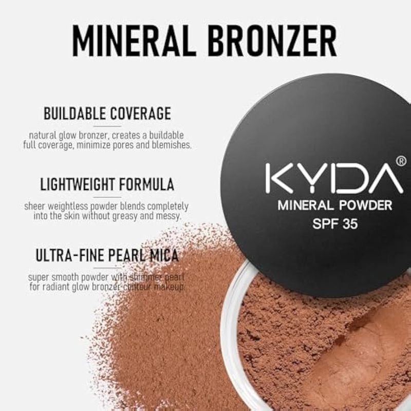 KYDA Bronceador en polvo mineral, SPF 35, bronceador mineral suelto, polvo ligero para contorno de