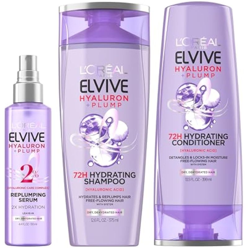 L'OREAL PARIS ELVIVE HYALURON PLUMP CHAMPú Y ACONDICIONADOR HIDRATANTE DE 12.6 ONZAS LíQUIDAS, SUERO HIDRATANTE CON áCIDO HIALURóNICO PARA CABELLO DESHIDRATADO Y SECO, 4.4 ONZAS LíQUIDAS