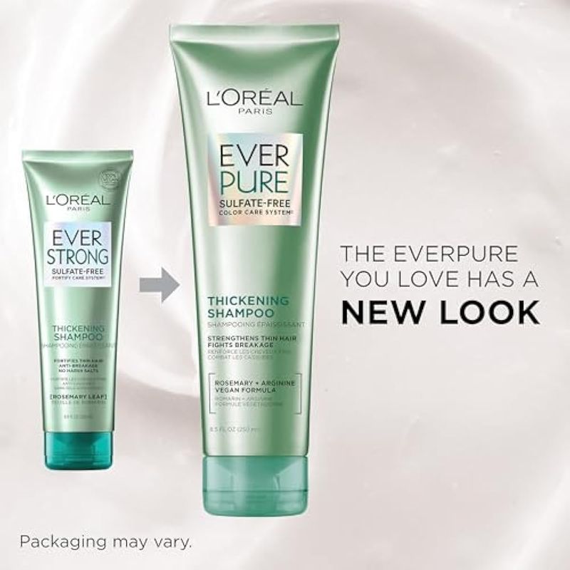 L'OREAL PARIS EVERSTRONG - CHAMPú ESPESANTE SIN SULFATO, ESPESA Y FORTALECE, PARA CABELLO FINO Y FRáGIL, CON HOJA DE ROMERO, 8.5 ONZAS (EL EMBALAJE PUEDE VARIAR)