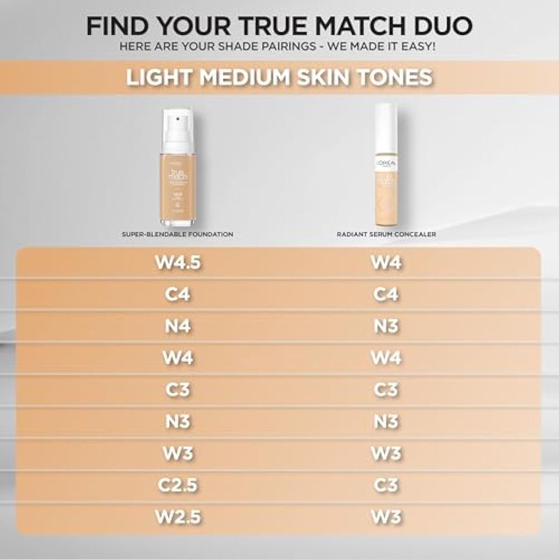 L'Oreal Paris True Match - Base líquida supermezclable, maquillaje de base líquida de cobertura