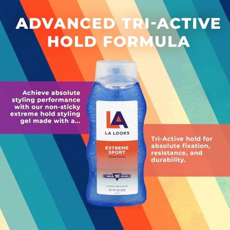 LA LOOKS STYLING GEL PARA EL CABELLO, DEPORTE EXTREMO, 20 ONZAS, SOPORTE PARA ACTIVIDADES DE ALTO RENDIMIENTO