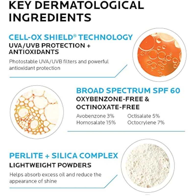 LA ROCHE-POSAY ANTHELIOS CLEAR SKIN, SECO TOUCH FACE PROTECTOR SOLAR, ACEITE úLTIMA INTERVENSIóN CON SPF 60, 1.7 FL. OZ.