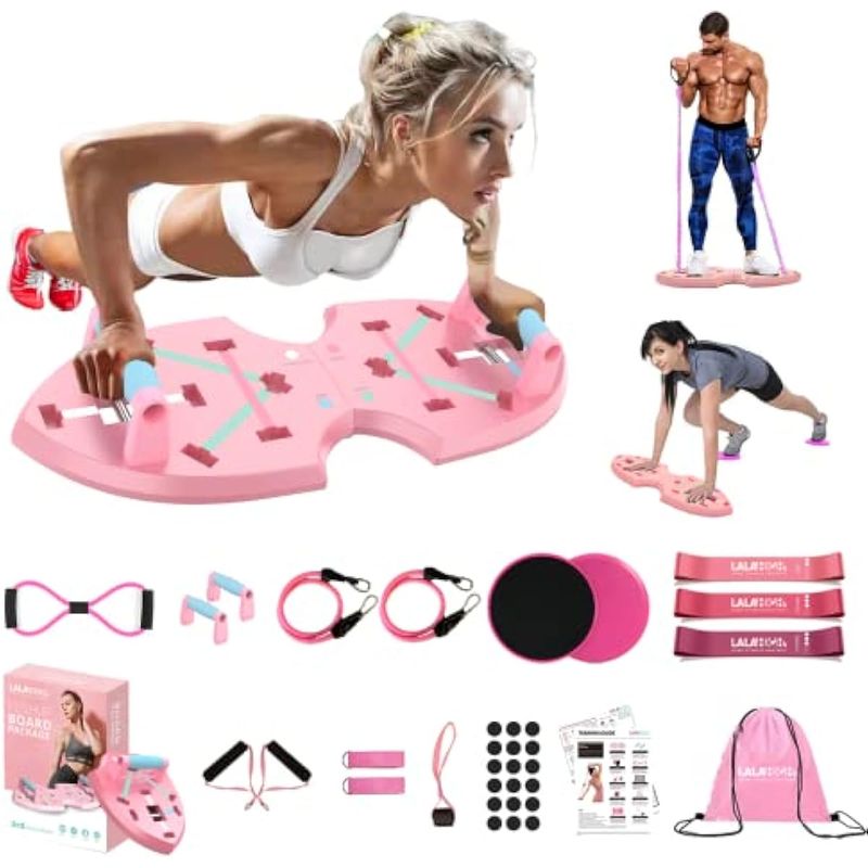 LALAHIGH PUSH UP BOARD, PORTABLE HOME WORKOUT EQUIPMENT FOR WOMEN & MEN, CORE SLIDERS FOR BODY TONING & STRENGTH TRAINING - PREMIUM PINK EDITION