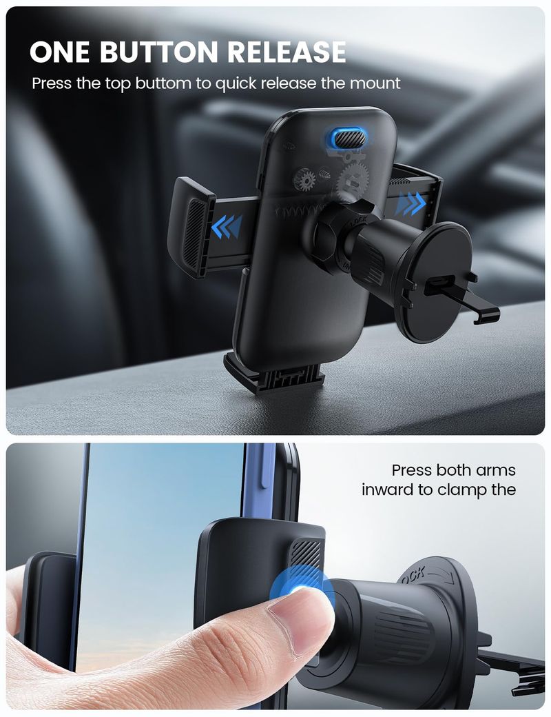 ?????Instalación sin complicaciones?Di adiós a los sistemas complicados que ocupan tu tiempo y energía. Nuestras bases para teléfono celular para automóvil son fáciles de instalar en cuestión de segundos, ¡requieren solo 2 sencillos pasos!
