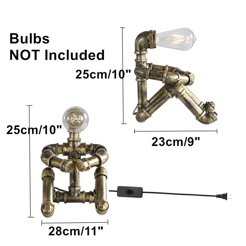 Decoración de arte retro rústico Regalos industrial de hierro estilo robot tubería de plomería 2 luces bombilla Edison lámpara de mesa. Hecho de hierro de alta calidad. Fácil instalación.
