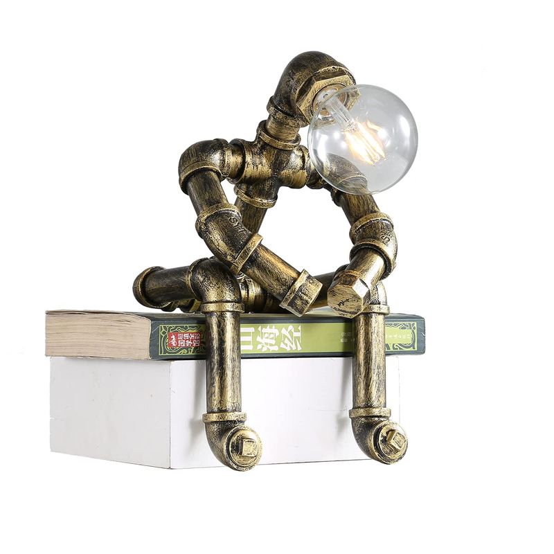 Lámpara de mesa de tubería de agua, estilo robot, luz de mesa industrial retro, lámpara de