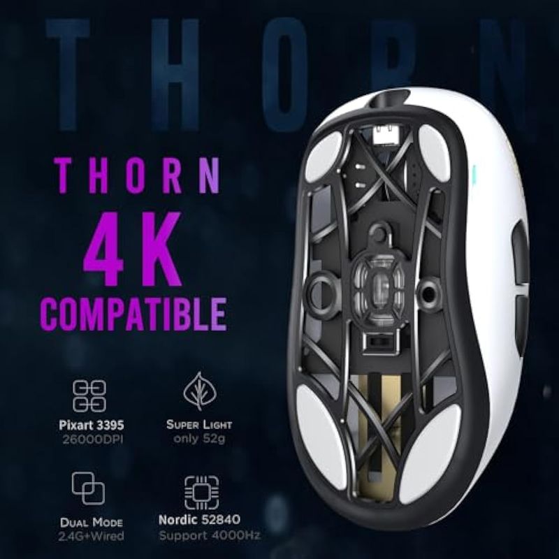 Lamzu Thorn - Mouse inalámbrico para juegos, ultraligero 1.83 oz, 26000 DPI, ergonómico, interruptor
