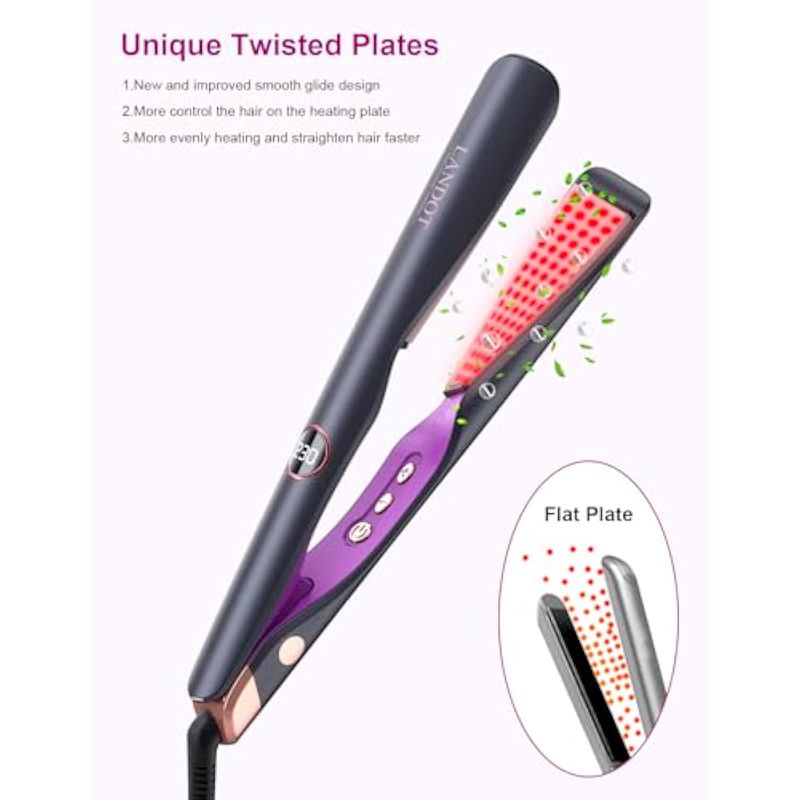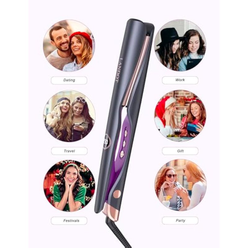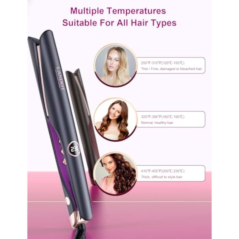 LANDOT Plancha y rizadora de pelo 2 en 1, plancha plana de cerámica para rizos suaves y cabello liso