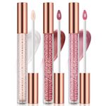 LANGMANNI Juego de brillo labial de ácido hialurónico (3 unidades), brillo y textura suave de larga