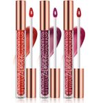LANGMANNI Juego de brillo labial de ácido hialurónico (3 unidades), brillo y textura suave de larga