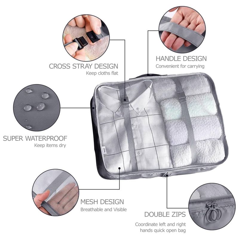 LANSKLBD Juego de 8 cubos de embalaje para maletas, organizadores de equipaje de viaje, esenciales