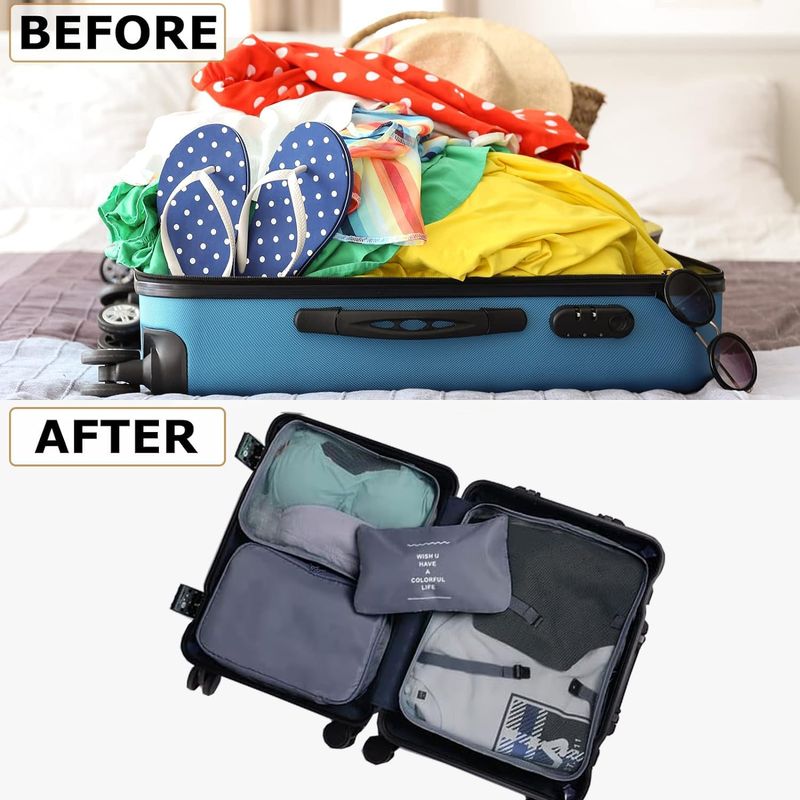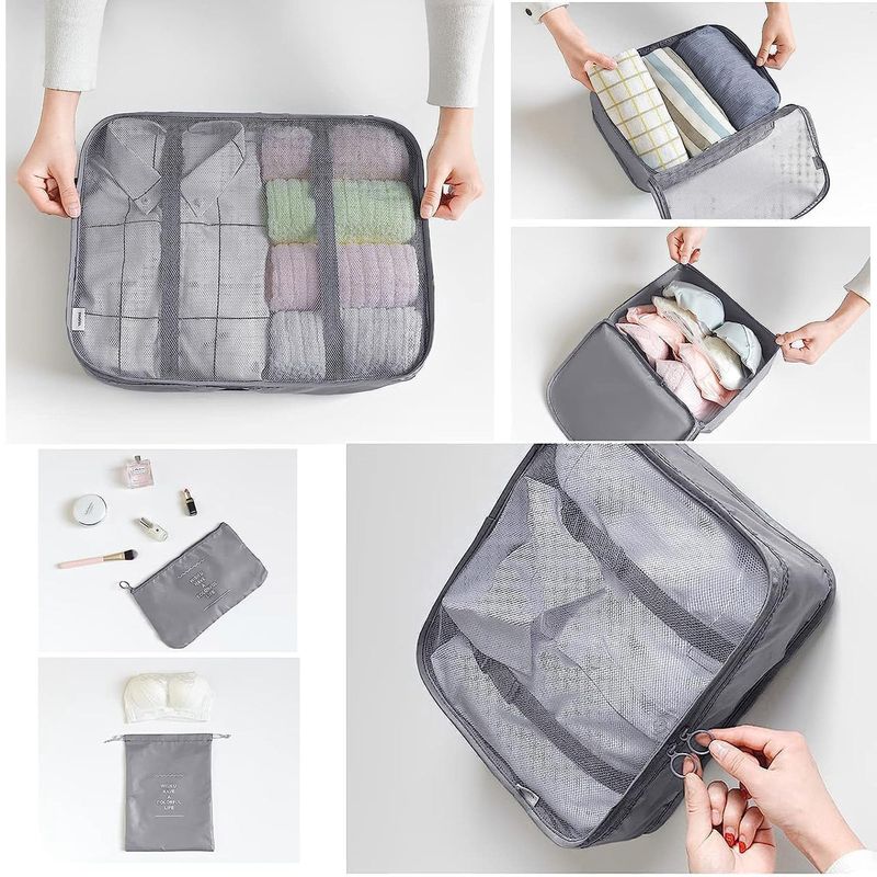 LANSKLBD Juego de 8 cubos de embalaje para maletas, organizadores de equipaje de viaje, esenciales