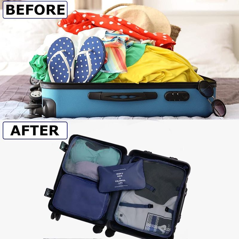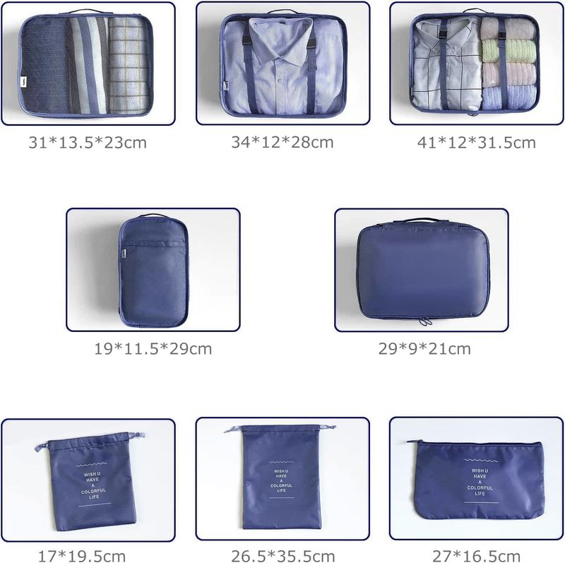 LANSKLBD Juego de 8 cubos de embalaje para maletas, organizadores de equipaje de viaje, esenciales