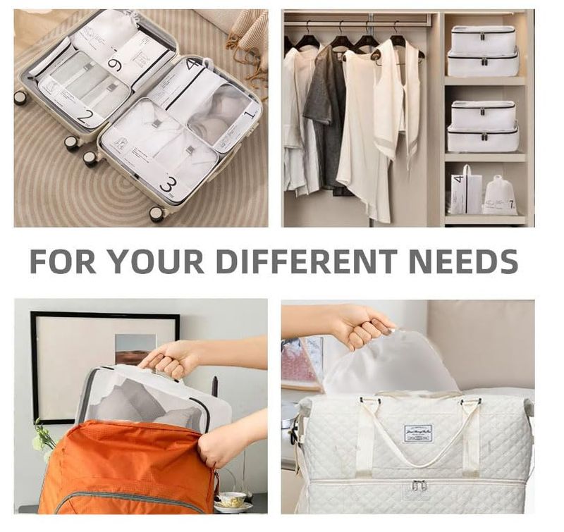 LANSKLBD Juego de 8 cubos de embalaje para maletas, organizadores de equipaje de viaje, esenciales