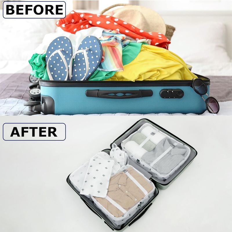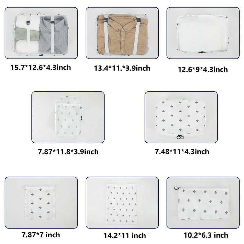 LANSKLBD Juego de 8 cubos de embalaje para maletas, organizadores de equipaje de viaje, esenciales