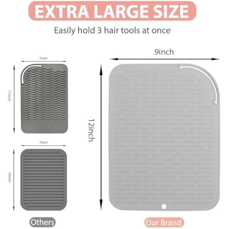 LARGE SILICONE HEAT RESISTANT MAT, PORTABLE TRAVEL HOT TOOLS HOLDER PAD FOR CURLING IRON, FLAT IRON, HAIR STRAIGHTENER AND OTHER HAIR STYLING TOOLS(12.0" X 9.0")